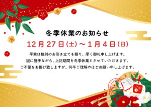 冬季休業のお知らせ新着!!