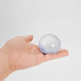 今回のキラキラボールのポイントは、ラメがたっぷり入っていること!これまでの水やジェル入りタイプとはひと味違い、見た目もぐっと華やかになりました。